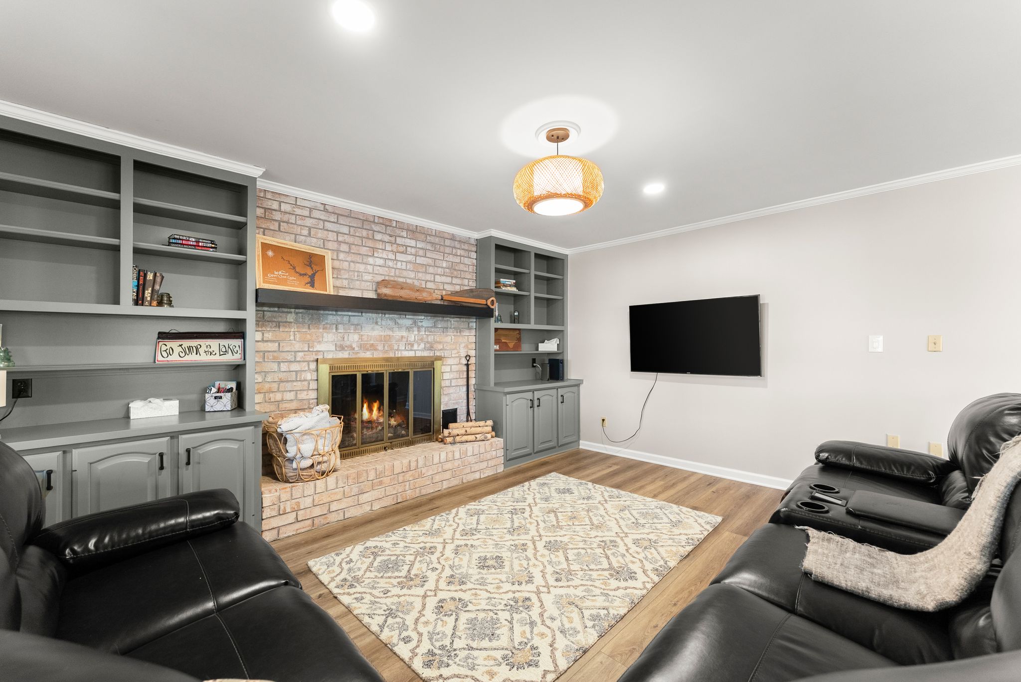 The finished basement adds even more versatility, featuring a large open living area ideal for a game room or second living space, along with a full bath, flex room, and walk-out access to the covered lower deck and direct path to the lake.