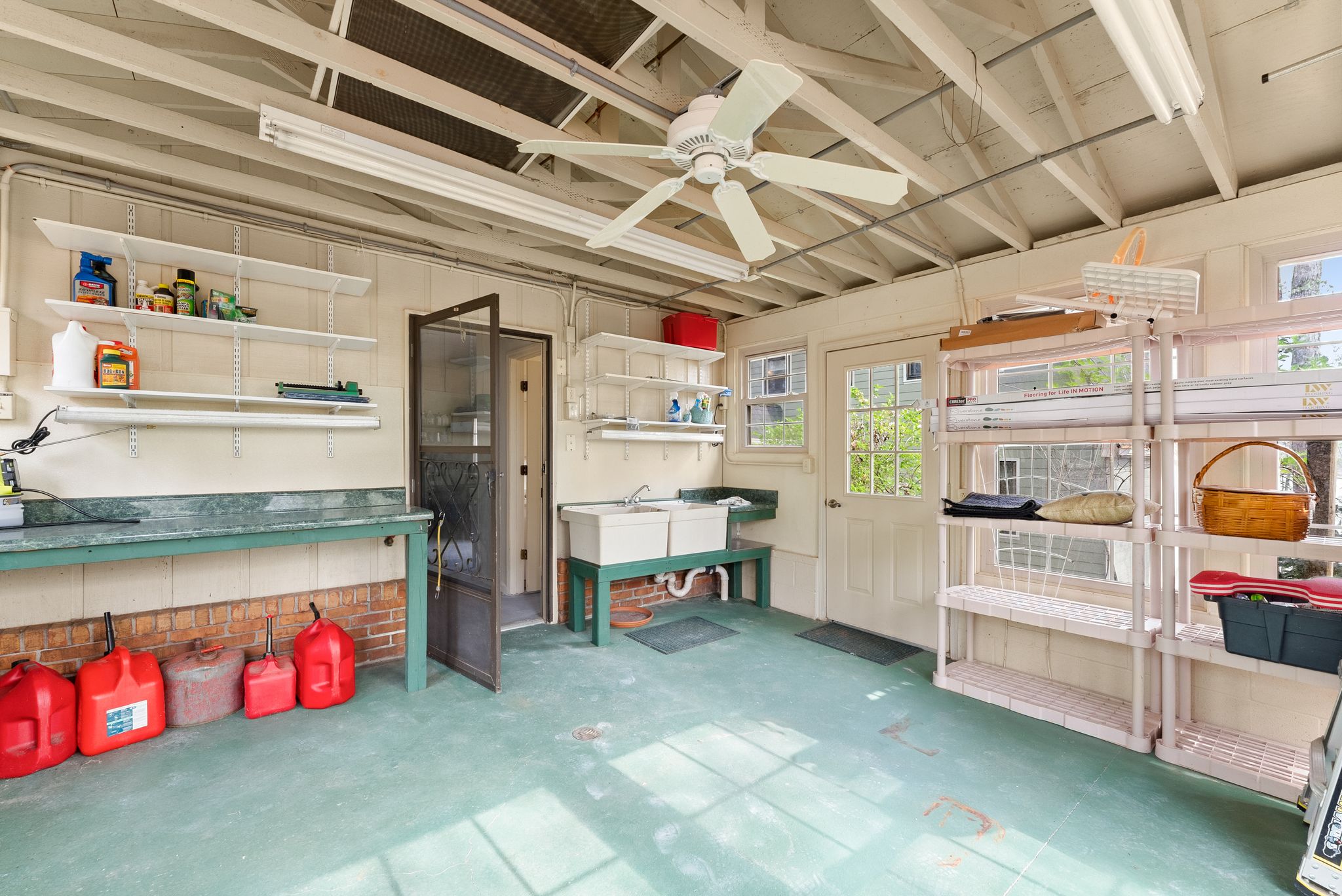 The 4-car heated and cooled garage is a standout feature, equipped with a car lift, service pit, and generous workspace, making it perfect for car enthusiasts or those needing extra room for hobbies, storage, or hosting.