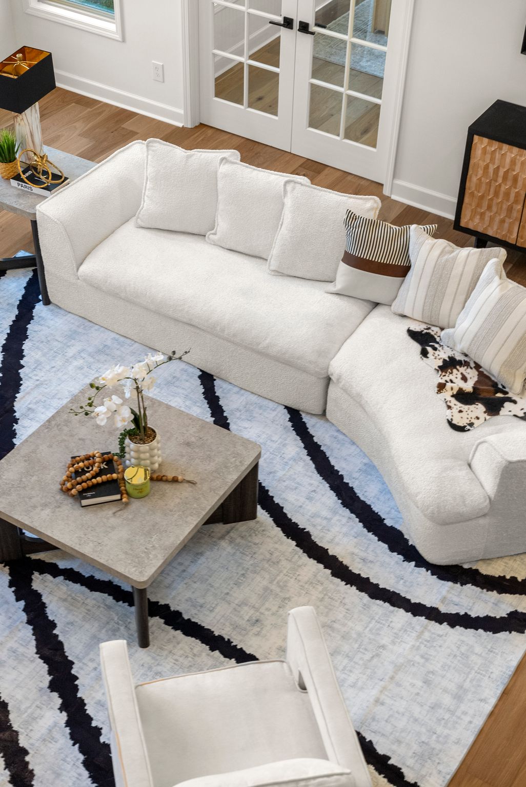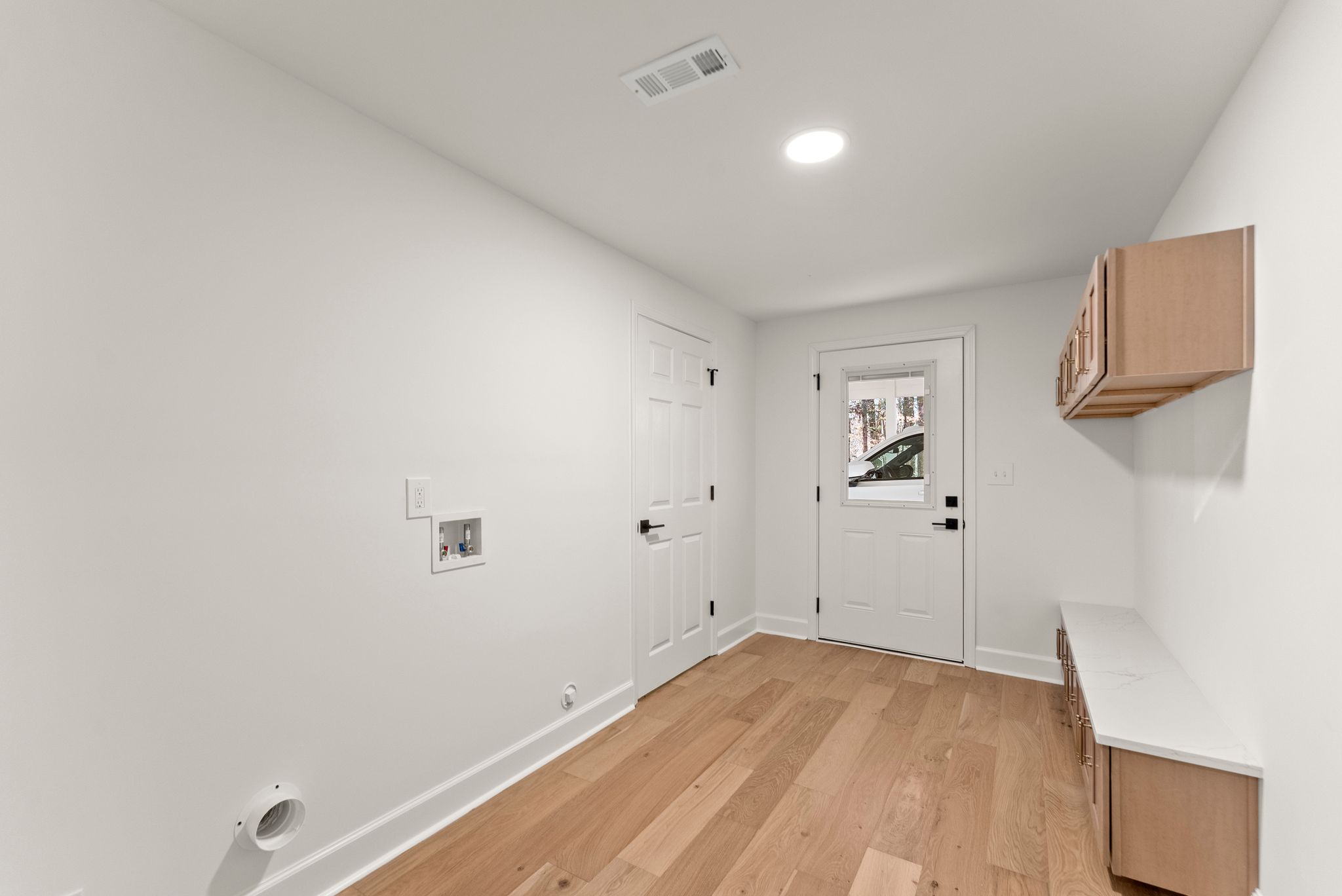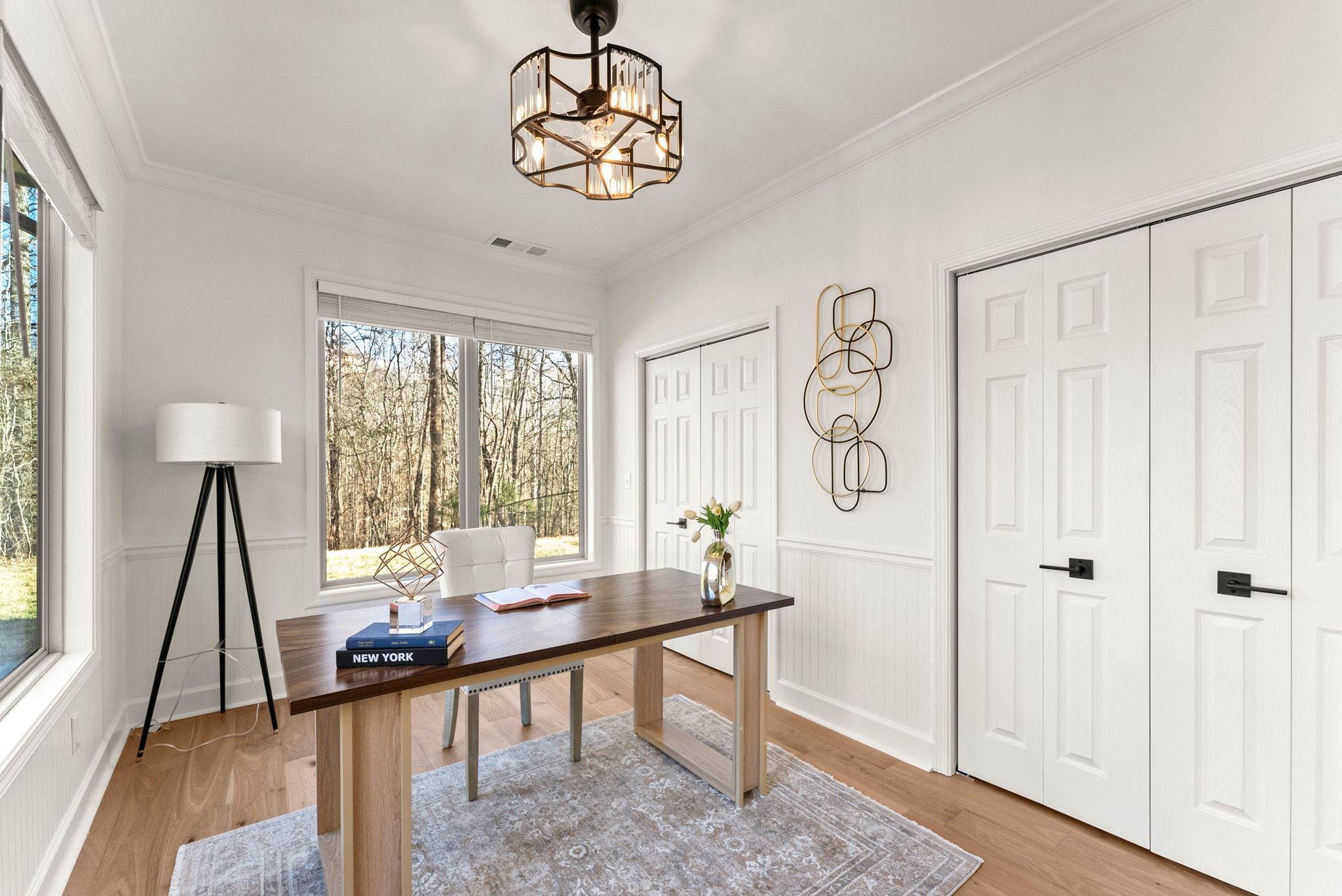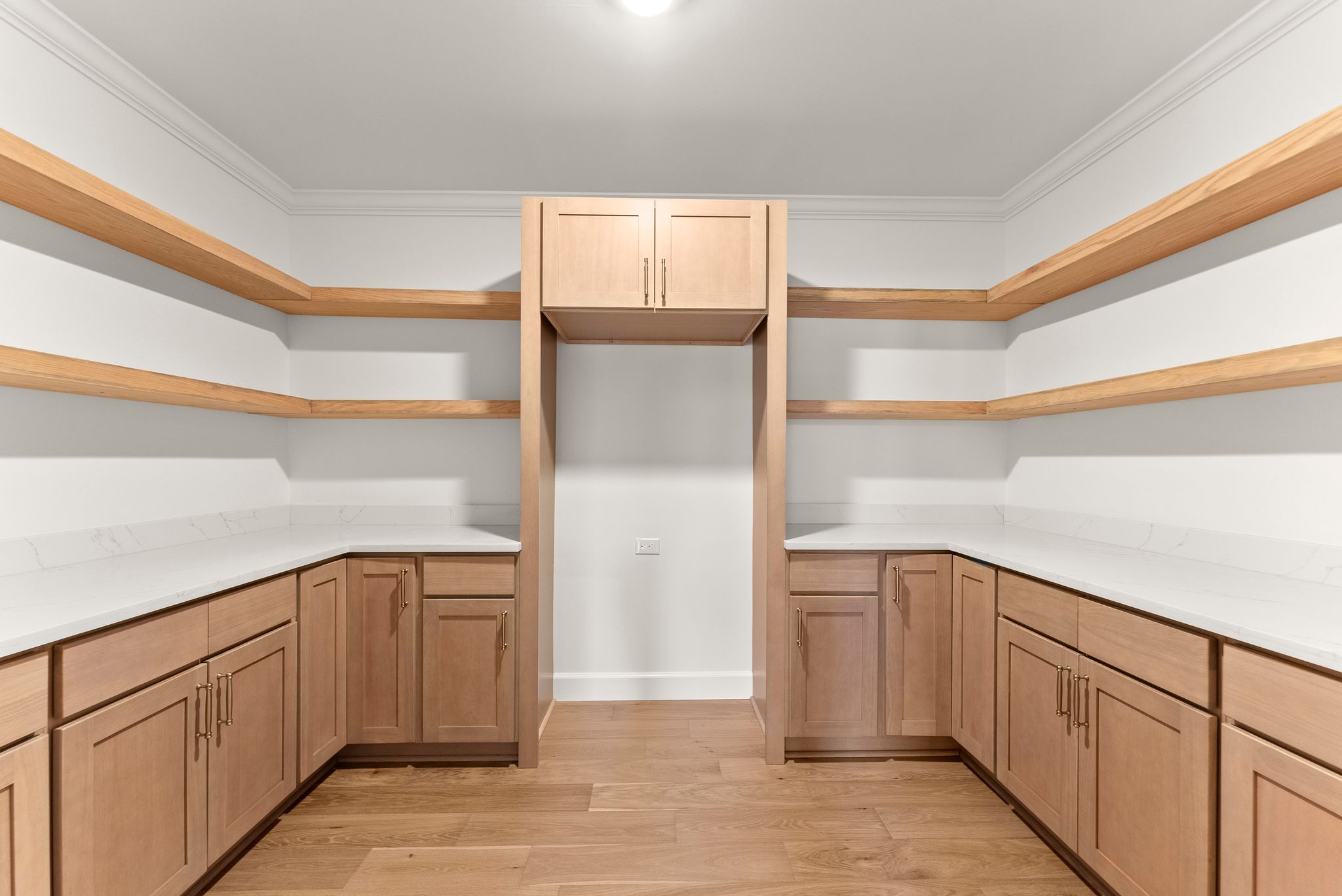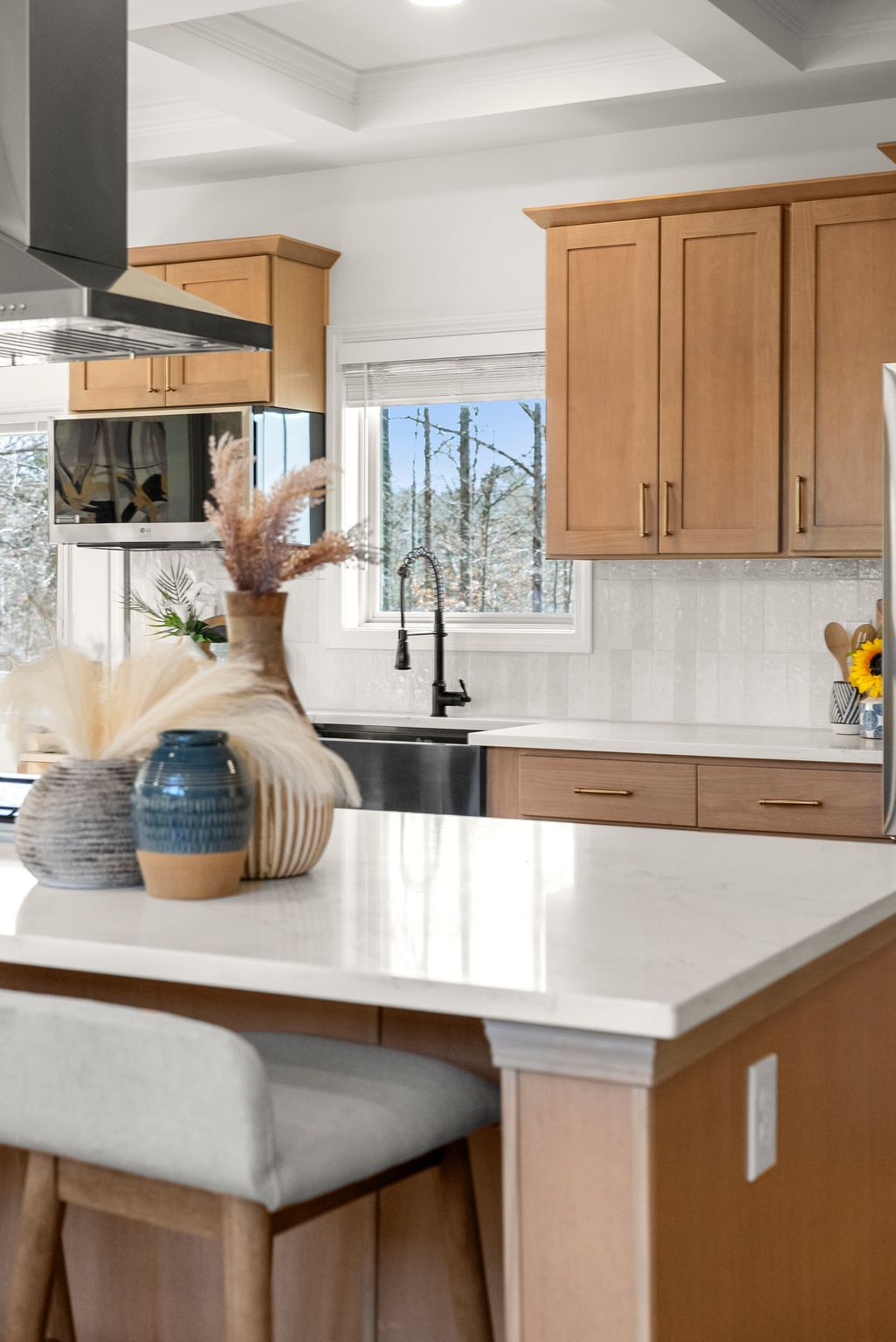 The heart of the home is the breathtaking kitchen, featuring custom cabinetry, stunning quartz countertops, stainless steel appliances, a massive center island, and coffered ceilings. A hidden walk-in pantry, seamlessly integrated within the cabinetry, adds both function and a touch of luxury. Brand-new French oak hardwood flooring flows throughout the entire house, complemented by fresh interior and exterior paint, a new HVAC system, and new lighting and plumbing fixtures throughout.