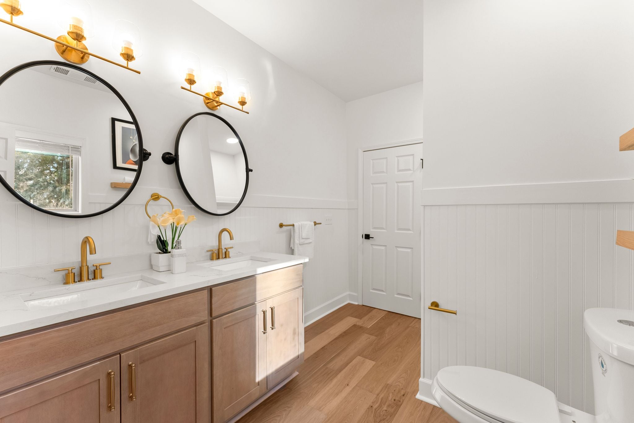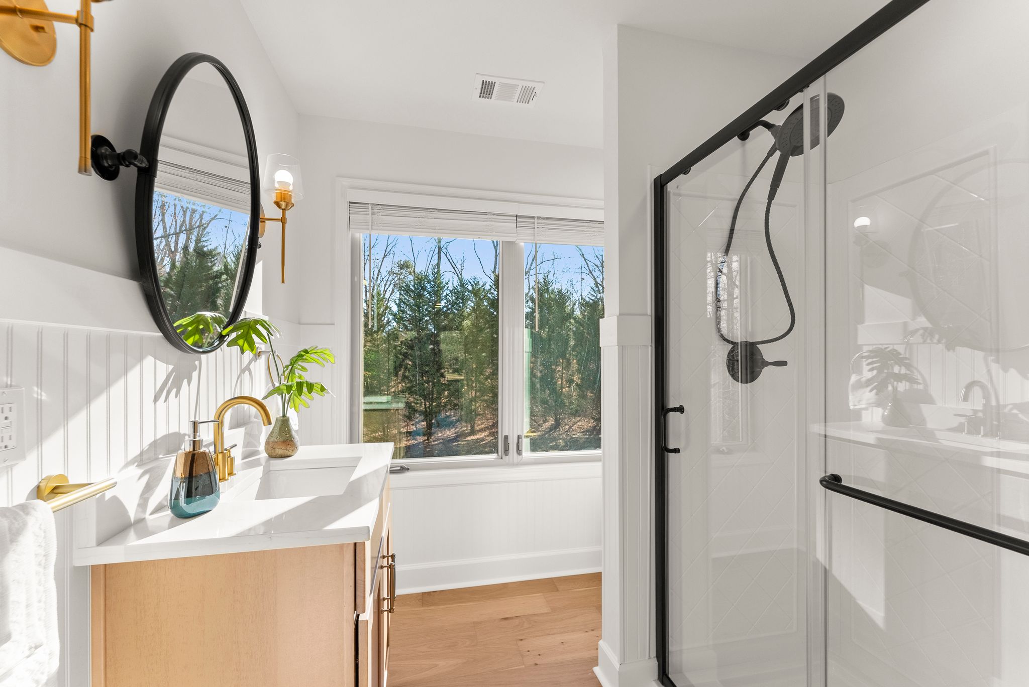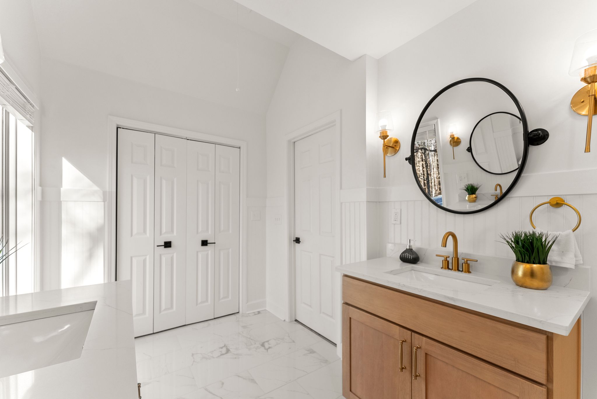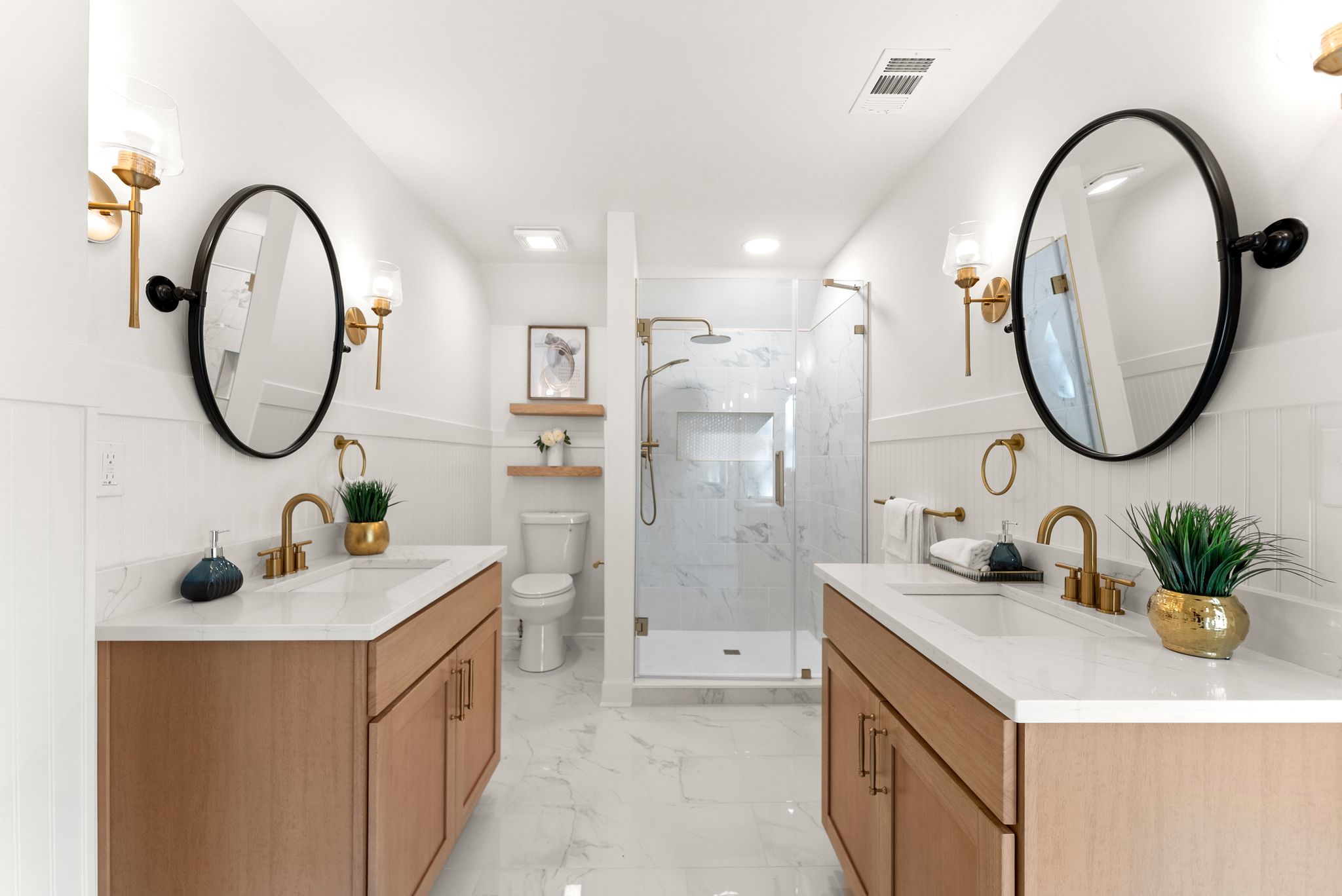 Upstairs, the spacious primary suite provides a private retreat with his-and-hers closets and a beautifully renovated en-suite bathroom featuring dual vanities and a tiled shower. The other bedroom upstairs also includes an en-suite bathroom, and the remaining bedrooms and baths in the home are equally as stunning as everything else you'll see.
